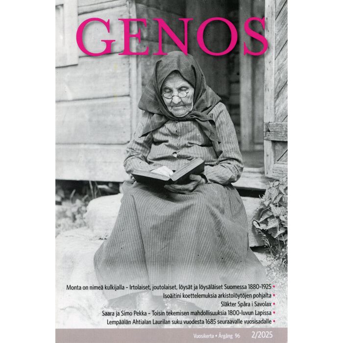 Genos 2025:2 sisältää mm. seuraavat artikkelit: Pauli Arola, Monta on nimeä kulkijalla – Irtolaiset, joutolaiset, löysät ja löysäläiset Suomessa 1880–1925; Pekka Hellemaa, Isoäitini koettelemuksia arkistolöytöjen pohjalta; Lasse Makkonen, Släkter Spåra i Savolax; Riitta Kontio, Saara ja Simo Pekka – Toisin tekemisen mahdollisuuksia 1800-luvun Lapissa; Veli Pekka Toropainen, Lempäälän Ahtialan Laurilan suku vuodesta 1685 seuraavalle vuosisadalle.